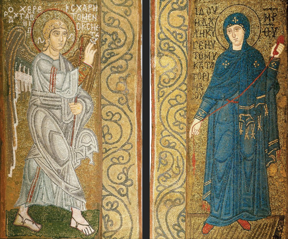 {"id":61,"form_id":4,"category":"category-1","name":"9.jpg","path":"images\/bridges\/9.jpg","url":"https:\/\/bridges.polyuni-frankfurt.de\/images\/bridges\/9.jpg","thumbnail_url":"\/images\/bagallery\/gallery-4\/thumbnail\/category-1\/9.jpg","title":"From Byzantium to Kyiv: A Shifting Visual Tradition","short":"","alt":"","description":"<h1>From Byzantium to Kyiv: A Shifting Visual Tradition<\/h1>\n\n<hr \/>\n<p>Ukraine’s Christian roots are traced back to <strong>Byzantium<\/strong>, not Rome. The Eastern Orthodox tradition long shaped Ukrainian religious art, favoring <strong>flat, frontal, symbolic<\/strong> images. One can still see this heritage in the mosaics of Kyiv’s eleventh-century St. Sophia Cathedral.<\/p>\n\n<p> <\/p>\n\n<h2>The Annunciation<\/h2>\n\n<p>Unknown artist<\/p>\n\n<p>Mosaic, 11th century<\/p>\n\n<p>Virgin Mary (height: 2.23 m) and Archangel Gabriel (height: 2.23 m)<\/p>\n\n<p>North-eastern and south-eastern piers beneath the dome,<\/p>\n\n<p>Saint Sophia Cathedral, Kyiv<\/p>\n\n<p>(Source: Wikimedia Commons)<\/p>\n","link":"","video":"","settings":null,"likes":0,"imageId":"8","target":"blank","lightboxUrl":"from-byzantium-to-kyiv-a-shifting-visual-tradition","watermark_name":"9.jpg","hideInAll":0,"suffix":"round "}